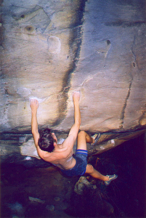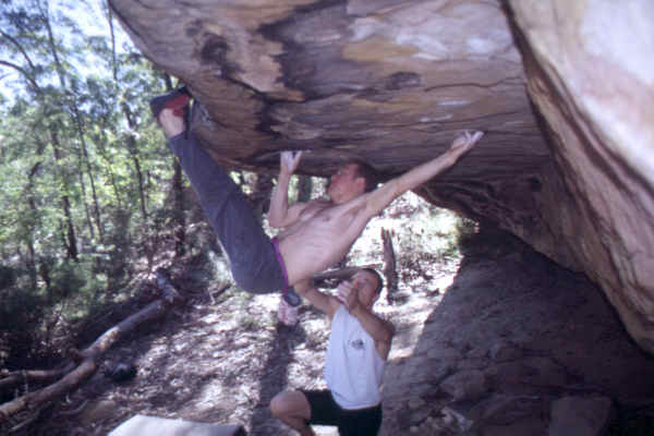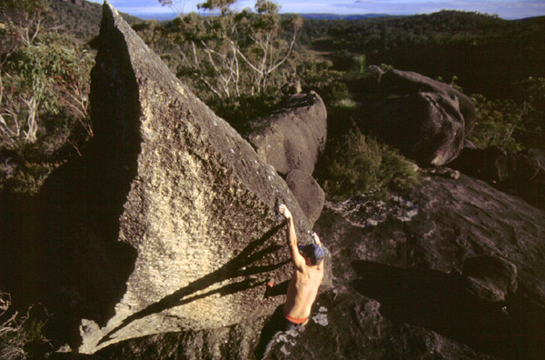![]() Tim O'Neill on Milo on the Rocks (V3) at the Balkans, NSW. |