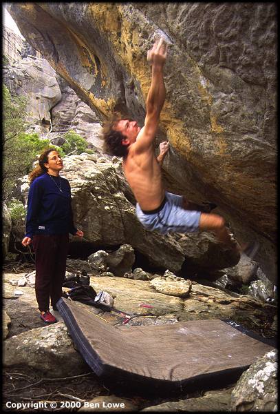 ![]() © Simon Carter Fred Nicole on Ammagamma (V13) at Grampians, VIC. |