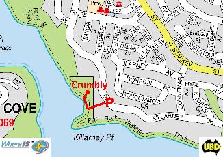 History: Crumbly was first developed as a climbing crag by Peter Martin et al but they overlooked the big horizontal roof starts to all the routes opting for cheater stones and jump starts. It was so named because of a large crumbly section on the right where there was no climbing possible. Then Mike and Dave Kellermann independently discovered the crag on one of their regular boat trips up middle harbour and with the help of Tim O'Neill they realised the potential it held for great boulder problems. There are about 10 problems now ranging from V5 to V13. All the problems are steep and the best are actually horizontal - Chaos and Disorder V11? and Anorexic V5 are arguably the best problems for their style and grade in Sydney!